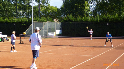 Intussen was op baan 3 een Titanenstrijd aan de gang tussen het vermaarde duo Irma en Herman (niet Hans) van Breukelen tegen het gelegenheidskoppel George Clooney en Angelique Brunott. Achteraf hadden Irma en Herman liever op baan 5 willen spelen, lekker uit de wind, maar die wind kwam uit Noord-Oost, dus erg veel zal dat vermoedelijk niet gescheeld hebben.