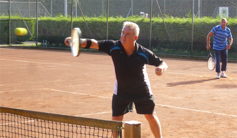 Het werd een ware conditieslag tegen Dottore Wanschers, met hele lange rally's waarbij Mark het meeste liep en Sjakie de ballen van links naar rechts stuurde. De physieke gesteldheid van beide heren was enorm, maar uiteindelijk trok de veel jongere Mark aan het langste eind via 6-2, 4-6 en 6-4. Petje af voor beide heren, en Dottore Wanschers dus naar de finale van zondag tegen......jawel, opnieuw de sterke Arden, die hij ook al in de poule trof.