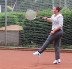 In het prachtige zonnetje op baan 5 speelden ook Patricia en Daniëlle tegen elkaar in de DE7/8. We zagen een opvallend sterke Patricia met krachtige slagen van zowel forehand als backhand. Maar ook Daniëlle Schot, nieuw bij Waterwijk, speelde beter dan we vooraf hadden gedacht. Leuk dat er af en toe toch ook bij de vrouwen weer nieuwe gezichten op ons Park komen spelen...en de goedlachse Daniëlle kun je er best bij hebben ....Je kon ook meteen zien dat ze bij de trainingen van Henk veel heeft opgestoken!! Het werd wel een ruime 6-1 winst voor Patricia in de eerste set, maar in de tweede moest Patricia toch alle zeilen bijzetten om die met 6-4 te winnen. "Heerlijk gespeeld" gavn beide dames aan.